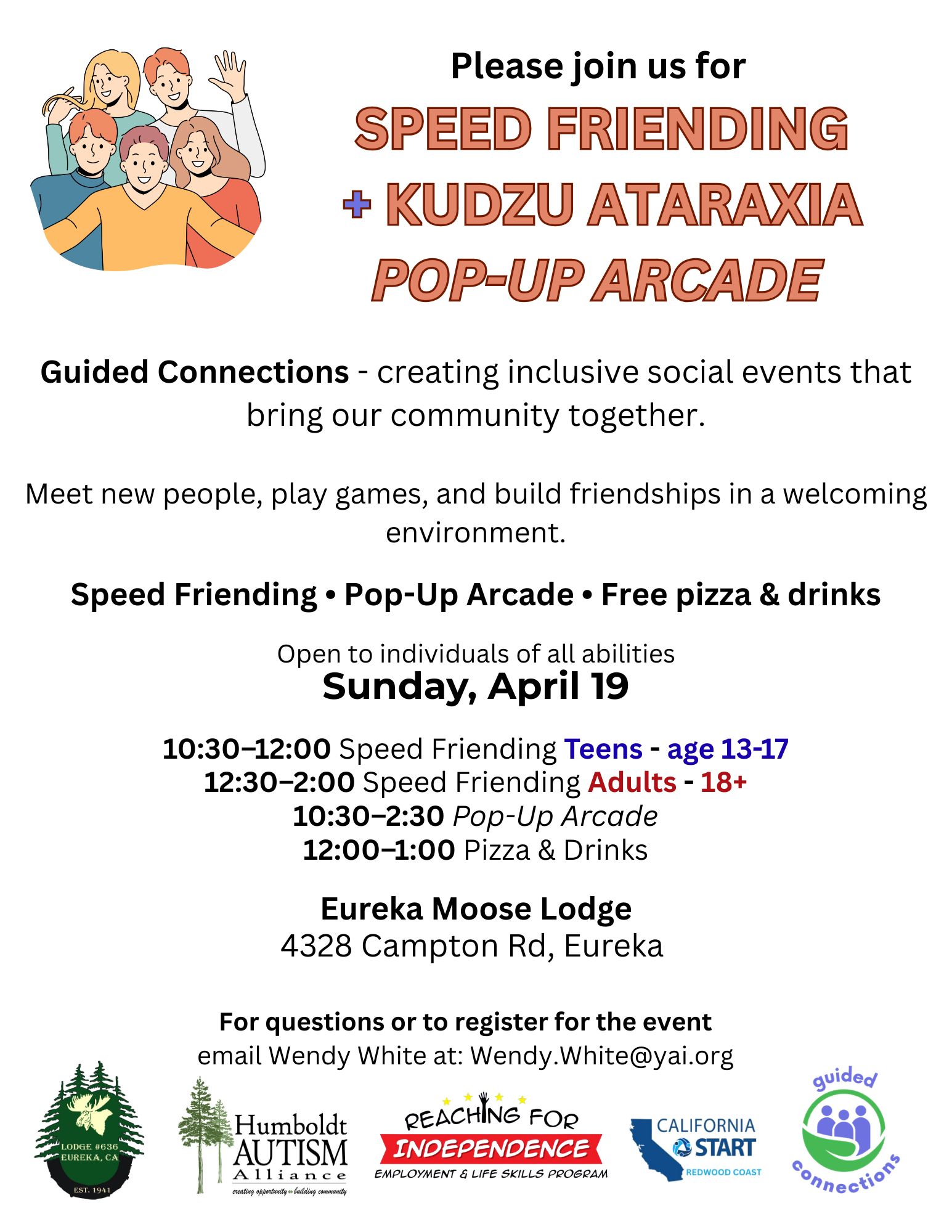 Speed Friending for young adults with ASD and developmental disabilities Sunday, April 19th Guided ConnectionsCreating inclusive social events that bring our community together. Meet new people, play games, and build […]